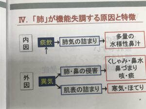 宣発(せんぱつ) と粛降(しゅつこう)です。 ★宣発→呼吸の「呼」気 栄養を上半身に送って、全身に回す。 ♪脾から吸収した栄養が肺臓に送り! ★粛降→呼吸の「吸」気 栄養を下半身に送る。排尿、排便の補助。 ♪腎は肺の粛降をサポートする★肺が機能失調する原因と特徴♪内側からの原因(内因)→痰飲肺脾腎虚 ➕外側からの原因(外因) →風邪、異気